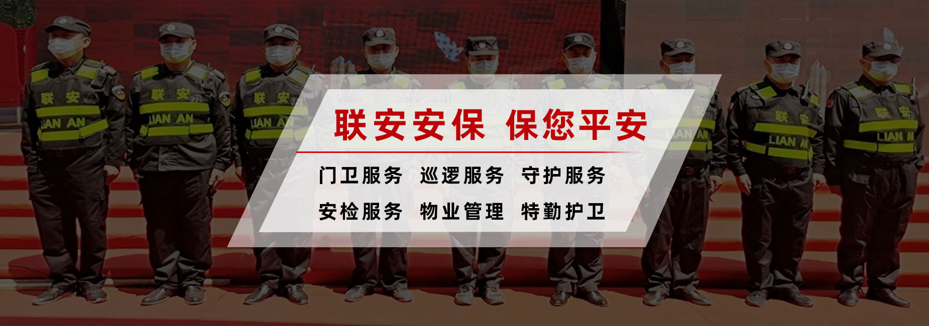 聯(lián)安安保保安風(fēng)采門(mén)衛(wèi)、巡邏、守護(hù)、隨身護(hù)衛(wèi)、安全檢查、安全技術(shù)防范等業(yè)務(wù).